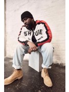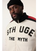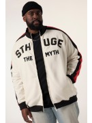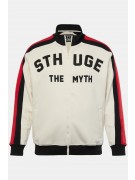 Ζακέτα, σε άνετη εφαρμογή, με κέντημα STHUGE, όρθιο γιακά, τσέπες, φερμουάρ και χρωματιστές ρίγες στα μακριά μανίκια.