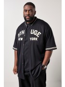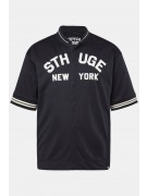 Πουκάμισο oversized με τύπωμα STHUGE NEW YORK, γιακά, κουμπιά, κοντά μανίκια και μανσέτες με ρίγες.