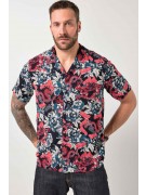 Πουκάμισο σε boxy fit, από μαλακό ύφασμα με χρωματιστό μοτίβο, γιακά cuban, κουμπιά και κοντά μανίκια. Για βέλτιστη άνεση, κατασκευάζουμε τα κουμπιά του πουκαμίσου ένα μέγεθος μεγαλύτερα από το μέγεθος 4XL και μετά.