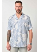 Πουκάμισο σε boxy fit, κοντομάνικο, φλοράλ με γιακά cuban και κουμπιά.
