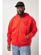 Ζακέτα oversized με κέντημα στο στήθος, κουκούλα, φερμουάρ, τσέπες, σχέδιο στην πλάτη, από ύφασμα terry και μακριά μανίκια.