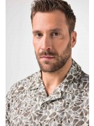 Πουκάμισο λινό, cuba fit, floral με γιακά, κουμπιά σε όλο το μήκος και κοντά μανίκια.