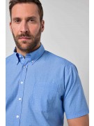 Πουκάμισο σε modern fit - ελαφρώς πιο στενή εφαρμογή με minimal μοτίβο, γιακά, κουμπιά, τσέπη στο στήθος και κοντά μανίκια. Για βέλτιστη άνεση, έχουμε κάνει τα κουμπιά του πουκαμίσου ένα μέγεθος μεγαλύτερα από το μέγεθος 4XL και πάνω.