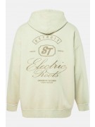 Μπλούζα φούτερ oversized, από απαλό ύφασμα με κέντημα Electric Rooks, vintage look, κουκούλα, τσέπη και μακριά μανίκια. Συνδυάζεται με τον κωδικό 847370.