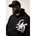 Φούτερ oversized με μεγάλο σχέδιο στο στήθος, από υψηλής ποιότητας ύφασμα με κουκούλα, σχέδιο στην πλάτη και μακριά μανίκια με ριμπ μανσέτες. Το μοντέλο μας έχει ύψος 190 εκατοστά και φοράει μέγεθος 4XL. OEKO-TEX