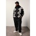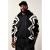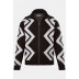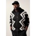 Ζακέτα με εξαιρετικά άνετη εφαρμογή, μοτίβο zig-zag, όρθιος γιακάς, φερμουάρ και μακριά μανίκια. Το μοντέλο μας έχει ύψος 190 εκατοστά και φοράει μέγεθος 4XL.