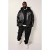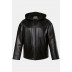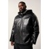 Μπουφάν δερμάτινο, oversized, από υψηλής ποιότητας δέρμα με κουκούλα, τσέπες, κλείσιμο με φερμουάρ και βελούδινη επένδυση. Το μοντέλο μας έχει ύψος 190 εκατοστά και φοράει μέγεθος 4XL.