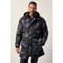 Μπουφάν καπιτονέ με camouflage print, από μαλακό και ζεστό ύφασμα με αφαιρούμενη κουκούλα, φερμουάρ διπλής κατεύθυνσης, κορδόνι στη μέση, τσέπες με fleece επένδυση, μακριά μανίκια και πλήρη επένδυση εσωτερικά.