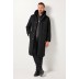 Παλτό μακρύ, αδιάβροχο,υψηλής ποιότητας με μάλλινη όψη, κουκούλα με κορδόνι, τσέπες, φερμουάρ, κουμπιά, σκίσιμο στο τελείωμα και μακριά μανίκια.
