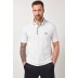 Μπλούζα πόλο, από ύφασμα που επιτρέπει στο δέρμα να αναπνέει, στεγνώνει γρήγορα με σχέδιο στο στήθος, γιακά με κουμπιά και κοντά μανίκια.