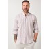 Πουκάμισο, από λινό ύφασμα, ριγέ με κέντημα στο στήθος, γιακά, κουμπιά και μακριά μανίκια.