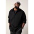 Πουκάμισο oversized με ριμπ υφή, από ζέρσεϊ ύφασμα με γιακά Kent, κουμπιά σε όλο το μήκος και μακριά μανίκια. Για βέλτιστη άνεση, κάνουμε τα κουμπιά του πουκαμίσου ένα νούμερο μεγαλύτερα από το μέγεθος 4XL.