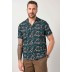 Πουκάμισο, από ζέρσεϊ ύφασμα με μοτίβο, cuban γιακά, κουμπιά και κοντά μανίκια.
