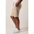 Βερμούδα με κλασική εφαρμογή, από μαλακό ύφασμα σε vintage look με λάστιχο στη μέση, κορδόνι και τσέπες.