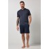 Πυτζάμες σετ με μοτίβο στη μπλούζα, λαιμόκοψη V και κοντά μανίκια. Βερμούδα μονόχρωμη με λάστιχο στη μέση, κορδόνι και πλαϊνές τσέπες.