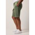 Βερμούδα με κλασική εφαρμογή, από μαλακό ύφασμα σε vintage look με λάστιχο στη μέση, κορδόνι και τσέπες.